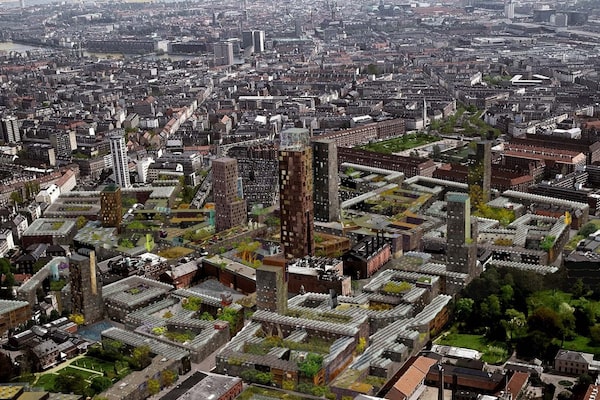 An aerial shot of Copenhagen's Carlsberg Byen, the 33-hectare former industrial district that is now partly owned by pension funds.Supplied