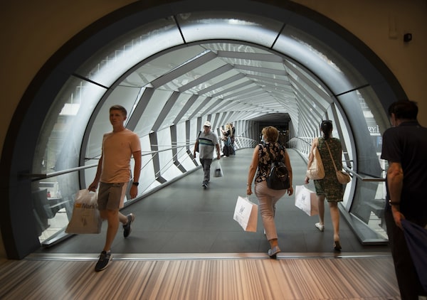 Shoppers crossing the CF Toronto Eaton Centre Bridge Eaton Centre in downtown Toronto on July 12.Fred Lum/The Globe and Mail