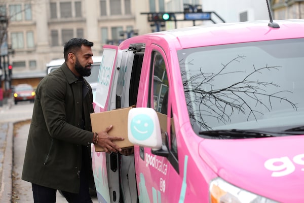 Obby Khan places a box in a Good Local delivery truck in downtown Winnipeg on Oct. 29, 2021.Shannon VanRaes/The Globe and Mail