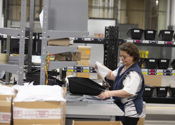 An employee fill online orders at the new distribution centre for La Vie en Rose in Montreal April 14, 2020.Christinne Muschi/The Globe and Mail