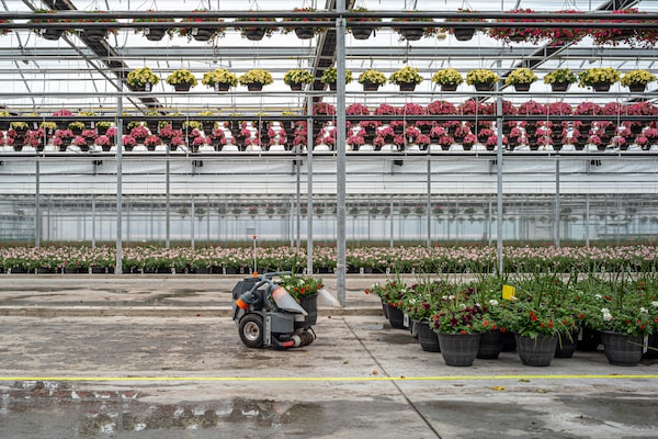 A robot transports potted plants at Jeffery's Greenhouses in Jordan Station, Ont. The robots are part of an automation-upgrading process for this family-run business, founded in 1933 by Barbara Jeffery-Gibson’s grandparents.Moe Doiron