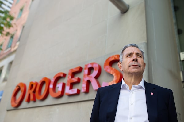 Tony Staffieri, CEO of Rogers, poses for a portrait outside the company's Toronto head office on Oct. 21, 2022.Shay Conroy/The Globe and Mail