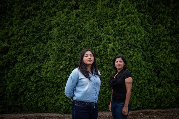 Karla Penate, left, former owner of roofing company Delphina Enterprises Ltd., and her office manager Lupe Sibrian, in Coquitlam, B.C., on July 24, 2020.DARRYL DYCK/The Globe and Mail