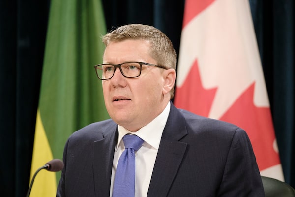 Saskatchewan Premier Scott Moe speaks at a press conference at the Legislative Building in Regina, March 25, 2021.Michael Bell/The Canadian Press