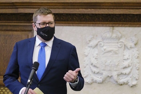 Saskatchewan Premier Scott Moe speaks in Regina, on April 6.Michael Bell/The Canadian Press