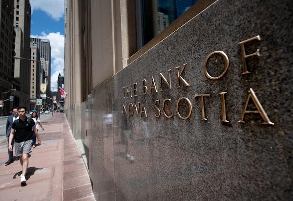 People walking past the Bank of Nova Scotia, on Bay St. in Toronto’s Financial District are photographed on July 12, 2022. Fred Lum/The Globe and Mail.Fred Lum/The Globe and Mail
