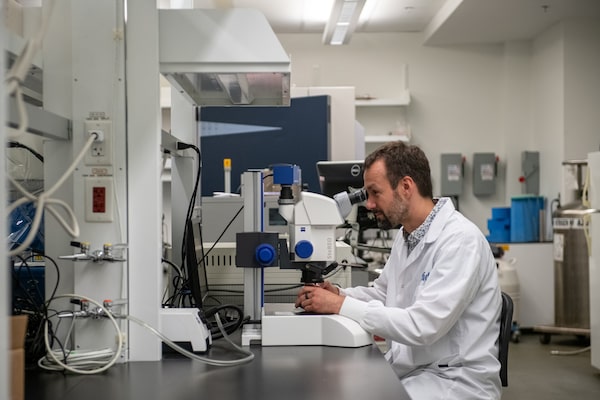 Researcher Jean-Philippe Julien, co-founder of Radiant Biotherapeutics, in a lab at SickKids Peter Gilgan Centre for Research and Learning in Toronto, on Sept. 12. Radiant Biotherapeutics has raised $35 million to develop super-antibody clusters in hopes of transforming therapies for patients facing complex diseases like HIV and cancer.Galit Rodan/The Globe and Mail