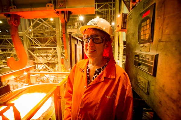 Angela Pappin, vice-president for technology at Dofasco, explains how molten metal goes through the process of becoming steel in the Hamilton plant. She says the advanced manufacturing supercluster could potentially deliver 'transformational' change in her industry.Glen Lowson