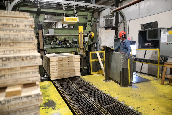 Finished lumber is run through the wrap-and-strap machine at West Fraser Pacific Inland Resources sawmill in Smithers, B.C. on Feb. 4, 2020.Jesse Winter/Reuters