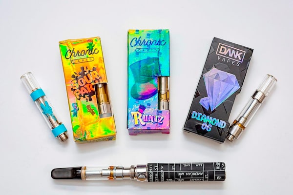 This photo made available by the New York State Department of Health on Sept. 5, 2019 shows a few of the cannabis-containing vaping products which contained high levels of vitamin E acetate. Vitamin E acetate is a key focus of the department's investigation of potential causes of vaping-associated pulmonary illnesses.Mike Wren/New York State Department of Health/AP via The Canadian Press