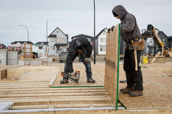 Framers work on a new house under construction in Airdrie, Alta., on Jan. 28.Jeff McIntosh/The Canadian Press