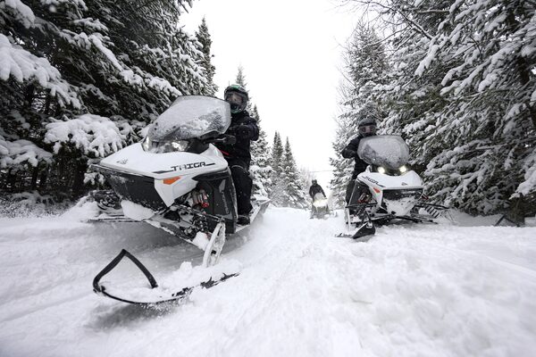 The Taiga performance team takes their Nomad Utility Snowmobile out on the trail in Saint-Faustin-Lac-Carre, Que.,, on March 2.Christinne Muschi/The Globe and Mail
