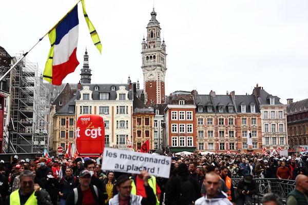 French protestors at La Grand'Place in Lille, France, last week during a day of nationwide strikes and protests. French political turmoil is expected to hamper economic growth in the region.SAMEER AL-DOUMY/AFP/Getty Images