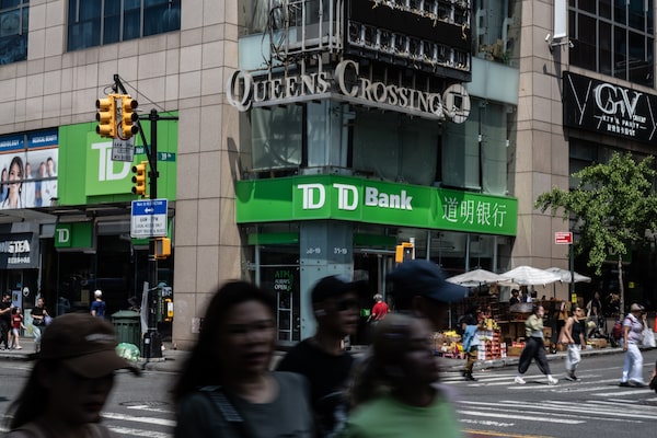 A TD Bank branch in the borough of Queens, in New York City in August, 2024. Last year TD became the first bank in the U.S. to plead guilty to conspiracy to commit money laundering.Stephanie Keith/The Globe and Mail