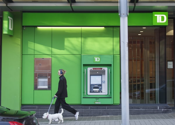 A person walks their dog past a TD branch in Vancouver.Isabella Falsetti/The Globe and Mail