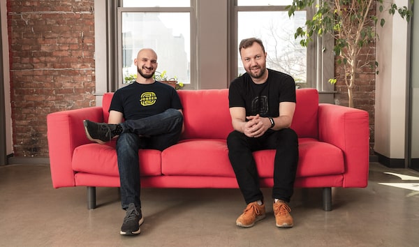 Forrest Zeisler, left, and Sam Pillar, founded Jobber, a growing Edmonton-based company that provides software for small businesses like painters, repair firms, plumbers, electricians and landscapers.