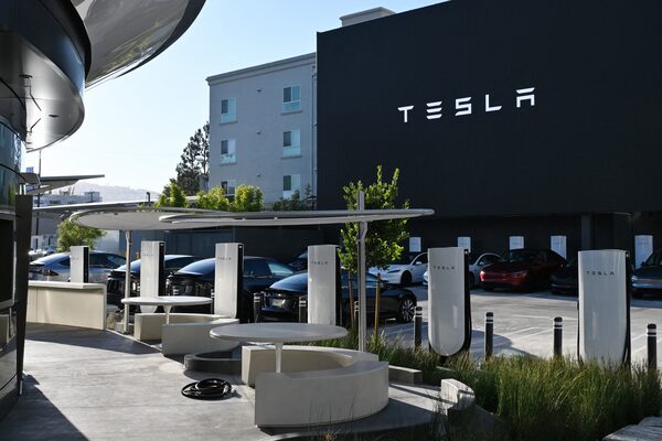 Elon Musk's Tesla Diner in Hollywood on July 8, 2025. Tesla investors are coming to terms with a series of events influencing the company such as Musk’s public feud with U.S. President Donald Trump, the ending of EV tax credits meant to boost sales of green vehicles and slumping sales.ROBYN BECK/AFP/Getty Images