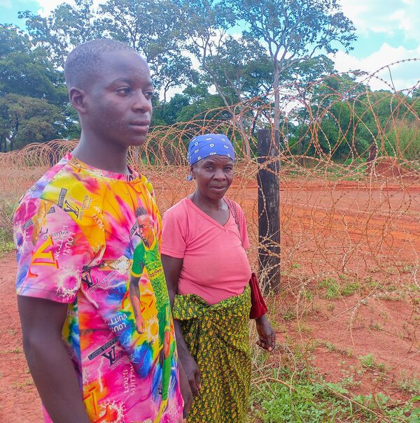 Malizoze Painet, touring the fence around her old farm with grandson Thomas Kasongo, says she misses her life there.