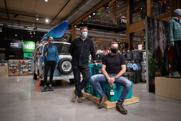 Eric Claus, right, CEO and Chairman of MEC Canada, and Jay Taylor president and COO, left, at the company's flagship store in Vancouver, on April 9, 2021.DARRYL DYCK/The Globe and Mail