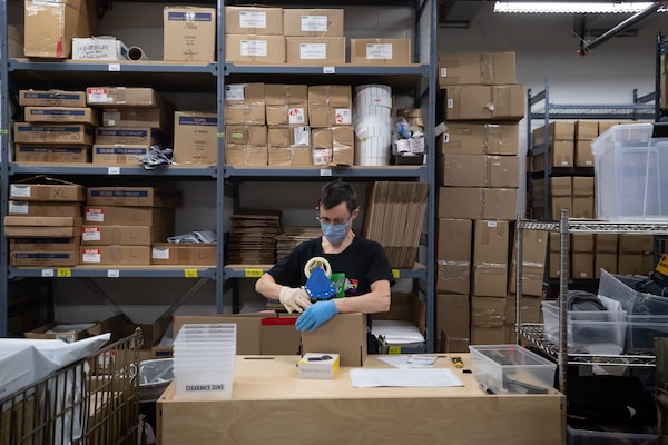 Gayle Hodgin packages online orders for shipping.DARRYL DYCK/The Globe and Mail