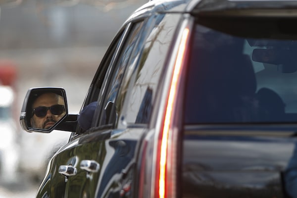 John Aquino talks on the phone in his SUV last April outside Bondfield's office in Vaughan. Mr. Aquino was Bondfield's CEO when it won the St. Michael's contract in 2015.Cole Burston/The Globe and Mail