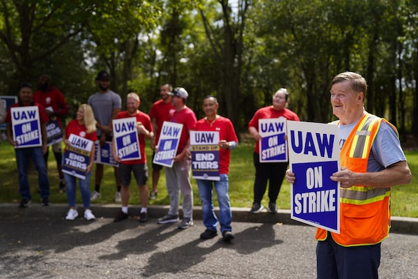 United Auto Workers members and supporters picket outside a General Motors facility in Langhorne, Pa. on Sept. 22.Matt Rourke/The Associated Press