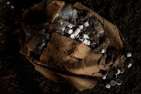 A bag of white plastic caps, used for bottling, lies on the dirty floor at the old plant. Mr. Ngo estimates they had 1.3 million litres of product here when the federal government ordered him to close.