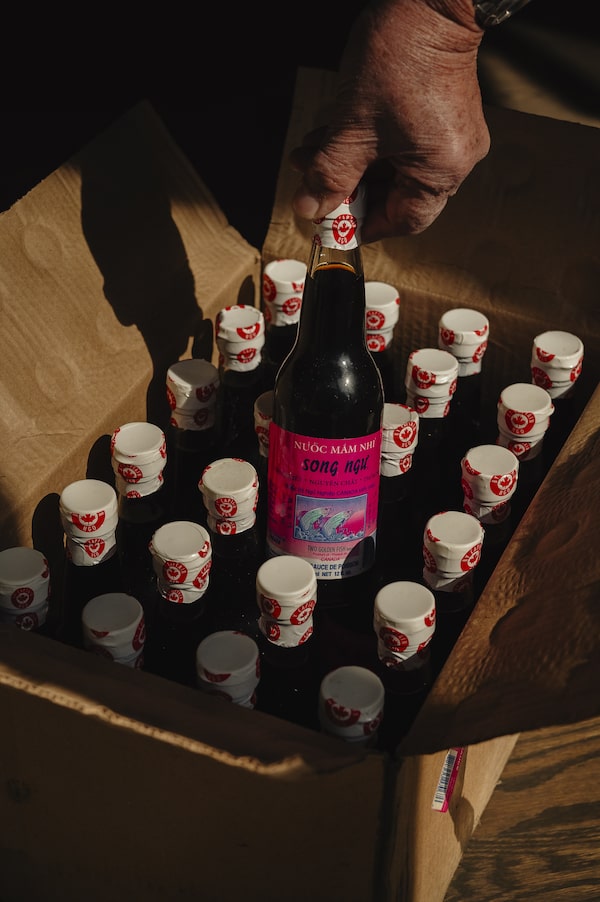 Mr. Ngo opens a box of Song Ngu fish-sauce bottles.Christopher Katsarov/The Globe and Mail