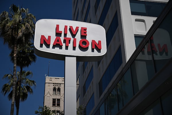 Live Nation signage outside offices in Hollywood, Calif. in May, 2024. Live Nation Entertainment owns, operates, controls booking for or has an equity interest in hundreds of concert venues.PATRICK T. FALLON/Getty Images