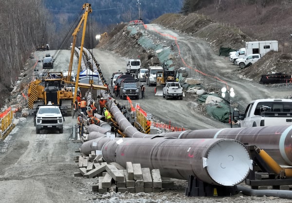A section of the Trans Mountain pipeline is assembled near Laidlaw, B.C., on Feb. 18, 2024.Chris Helgren/Reuters