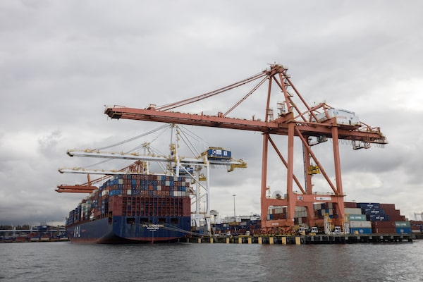 A ship docked at Global Container Terminals Inc.'s Vanterm facility at the Port of Vancouver on Oct. 21.JESSE WINTER/The Globe and Mail