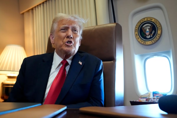 U.S. President Donald Trump speaks to reporters aboard Air Force One as he travels from West Palm Beach, Fla. to New Orleans on Feb. 9.Ben Curtis/The Associated Press