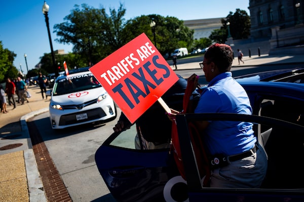 U.S. auto workers arrive on Capitol Hill in Washington on Thursday to demonstrate against tariffs that would negatively impact the industry.AL DRAGO/New York Times