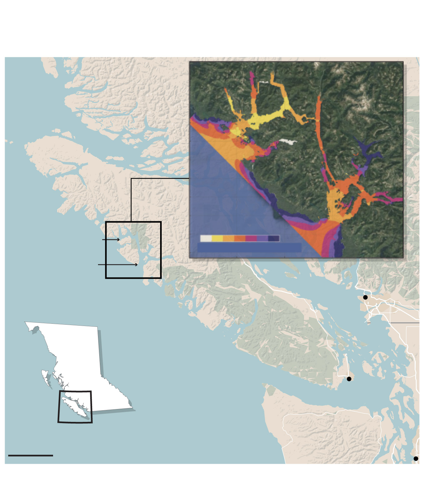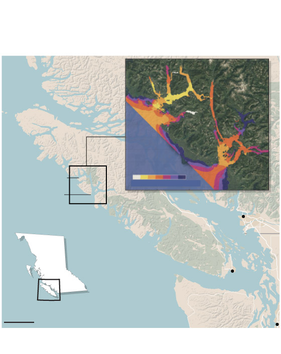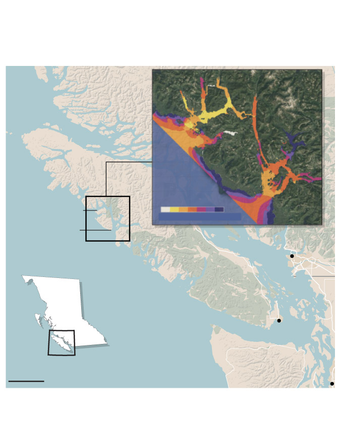 john sopinski/the globe and mail, source: openstreetmap; Ocean Networks Canada