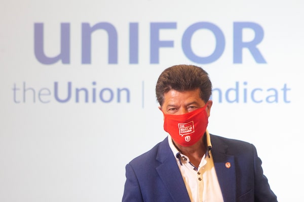 Unifor president Jerry Dias attends negotiations with Fiat Chrysler, Ford and General Motors in Toronto on Aug. 12, 2020.Chris Young/The Canadian Press