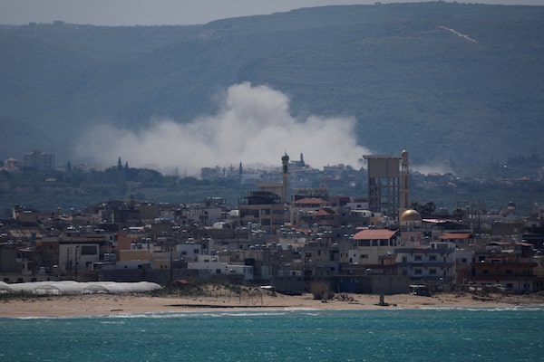Smoke rises following an Israeli strike at Qlaileh as seen from Tyre, Lebanon on Tuesday.Louisa Gouliamaki/Reuters