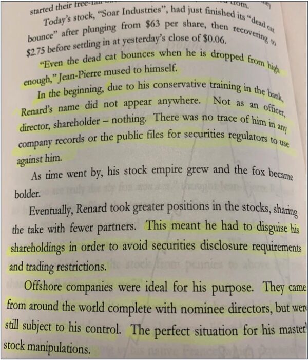 Court exhibit of a book written by Fred Sharp about a fictional swindler who uses offshore corporations to execute stock manipulations.Supplied