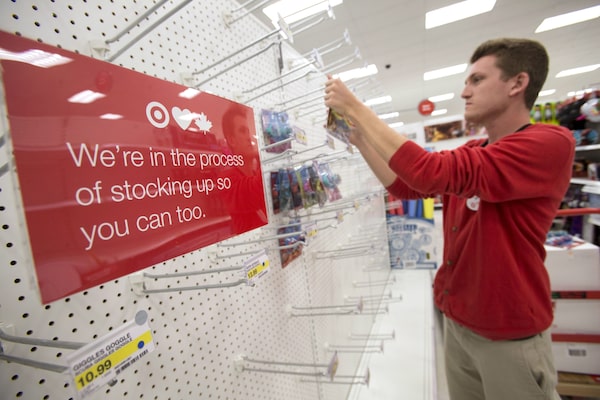 A Target employee stocks shelves in Guelph, Ont. in 2013.© Geoff Robins / Reuters/X02052