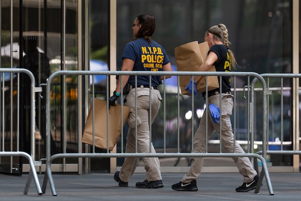 Members of the NYPD Crime Unit on Tuesday work at the scene of the shooting in New York.Yuki Iwamura/The Associated Press