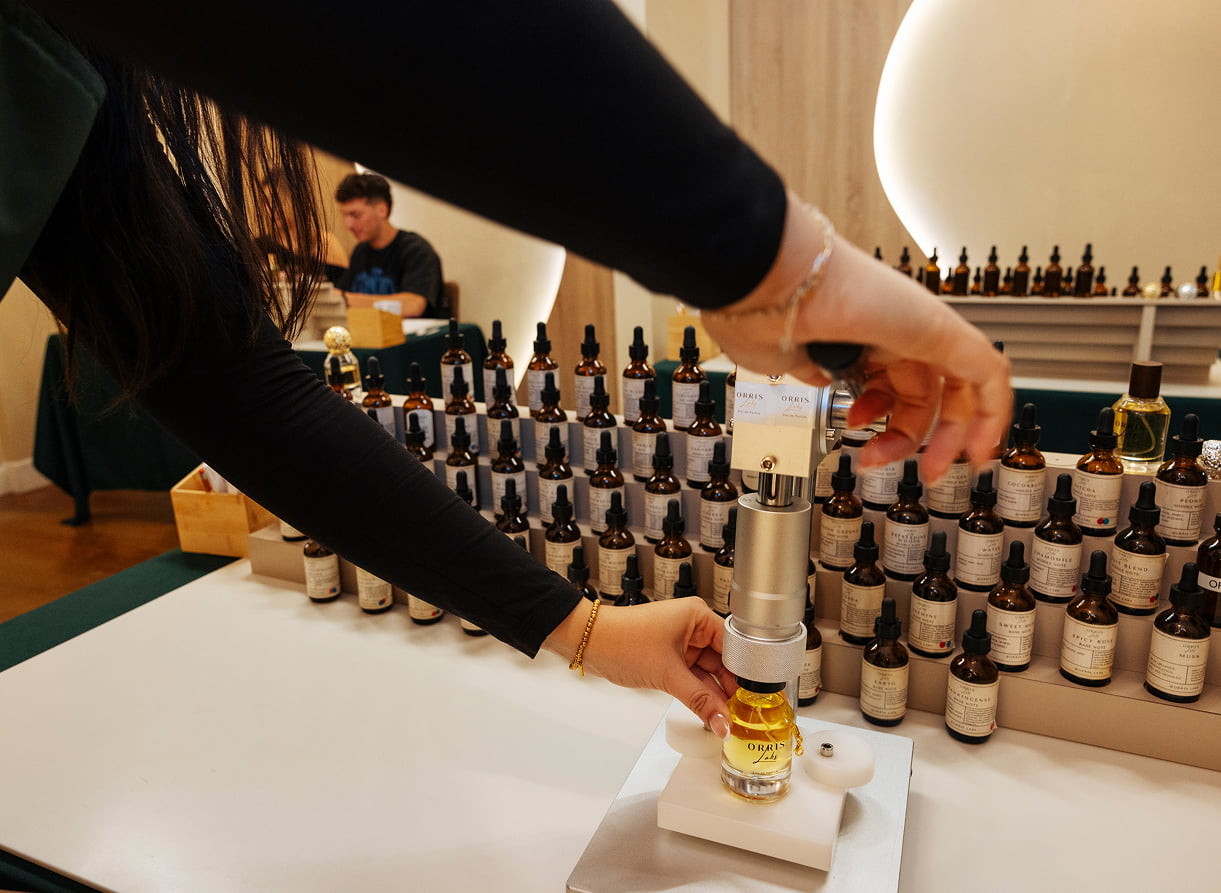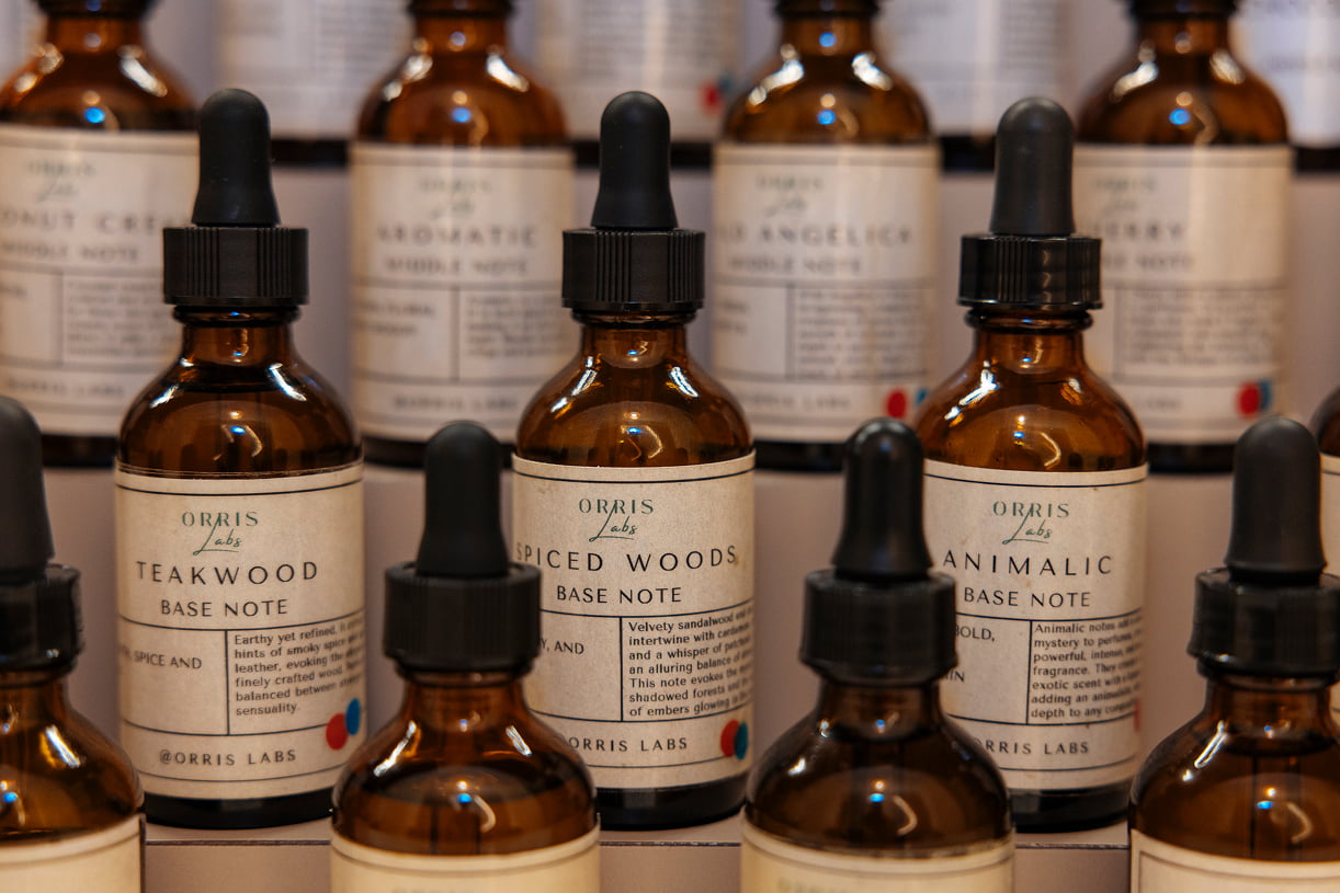 At Orris Labs, customers work with oils representing over 50 different notes to create their custom blend. They’re guided by trained experts, who also school them in the history of perfume and the art and science that goes into blending scents.