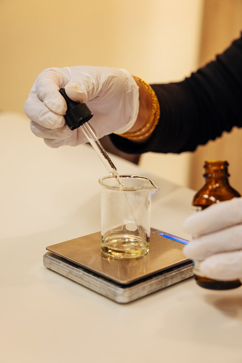 At the 7 Virtues Atelier, the process starts by smelling samples of the brand’s scents. After narrowing down the ones you like, you begin the process of blending it all together, smelling along the way to know whether your custom creation is working.