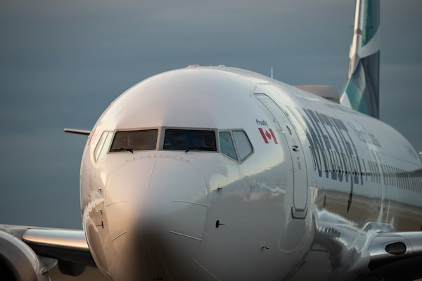 A WestJet aircraft taxis to a gate after arriving at Vancouver International Airport, on Jan. 21, 2021.DARRYL DYCK/The Canadian Press