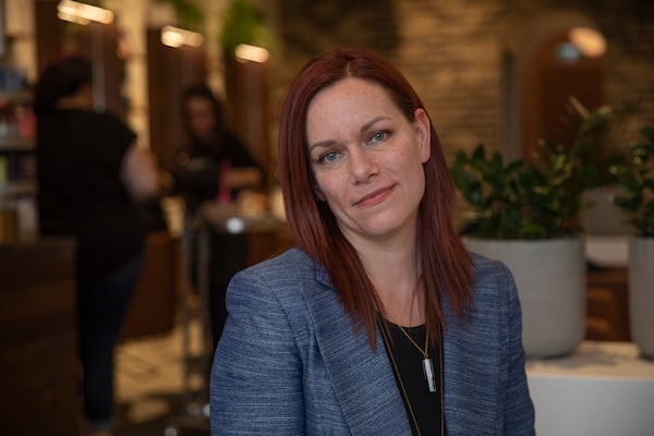 Vancouver hairstylist and Taproot Salon owner Sally Traynor says that being a single mother running a business equates to “an obscene amount of stress” and slower business growth.Maggie Naylor/The Globe and Mail