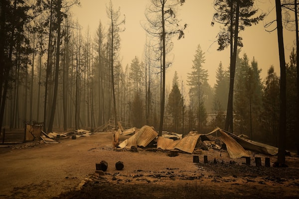 A property that was destroyed by the Lower East Adams Lake wildfire, in Scotch Creek, B.C., on Aug. 20.DARRYL DYCK/The Canadian Press