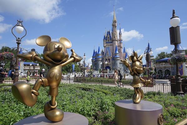 Travel services are where the U.S. enjoys the biggest advantage, thanks to the larger number of people travelling south to places like Disney World. The Cinderella Castle is seen at the Magic Kingdom at Walt Disney World in Lake Buena Vista, Fla., on July 14, 2023.John Raoux/The Associated Press