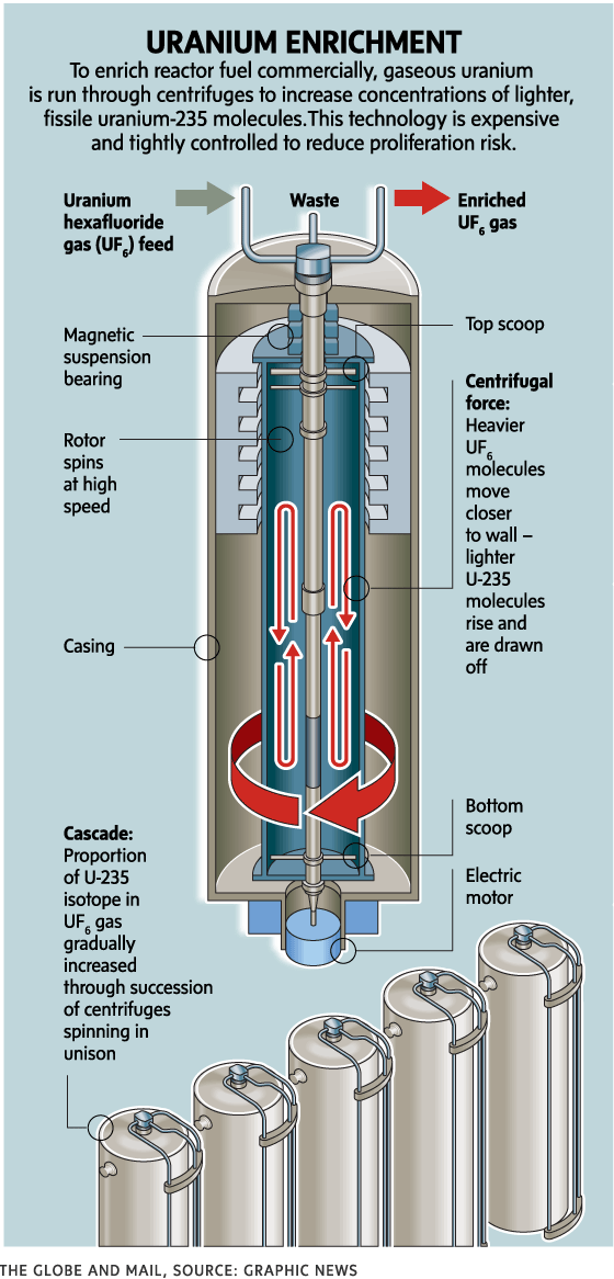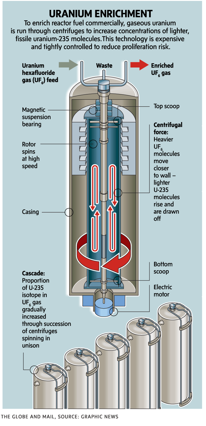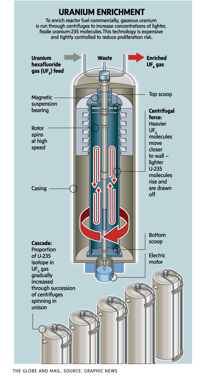 Internationally, enrichment capability is tightly controlled by the Nuclear Suppliers Group to prevent weapons proliferation. Canada’s a member but is not permitted to enrich uranium.