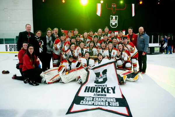 University of Guelph’s Gryphons celebrate their USports championship win in Charlottetown in March.Supplied
