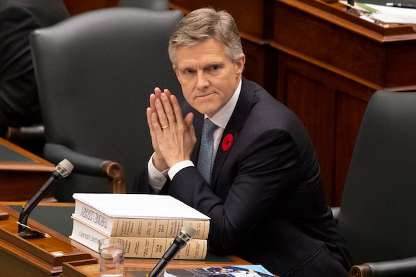 Ontario Finance Minister Rod Phillips prepares to deliver the fall economic statement, at the Ontario Legislature, in Toronto on Wednesday, November 6, 2019Chris Young/The Canadian Press