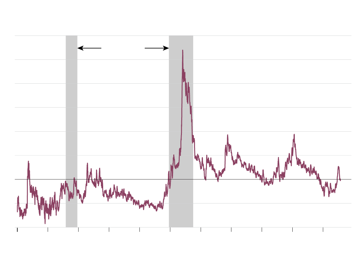 "In the most recent stress episode, neither the change in nor the level of the index was greater than in 2011 and 2016," Mr. Arsenau and Mr. Doyon said.