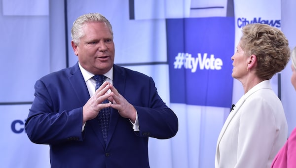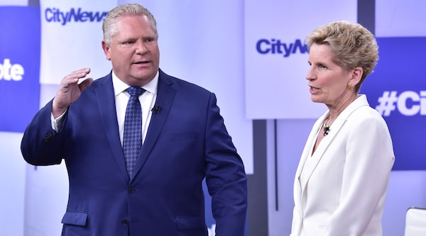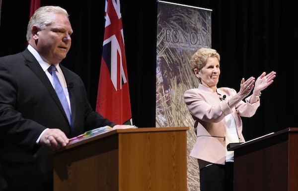 Ontario Conservative Leader Doug Ford and Liberal Leader Kathleen Wynne